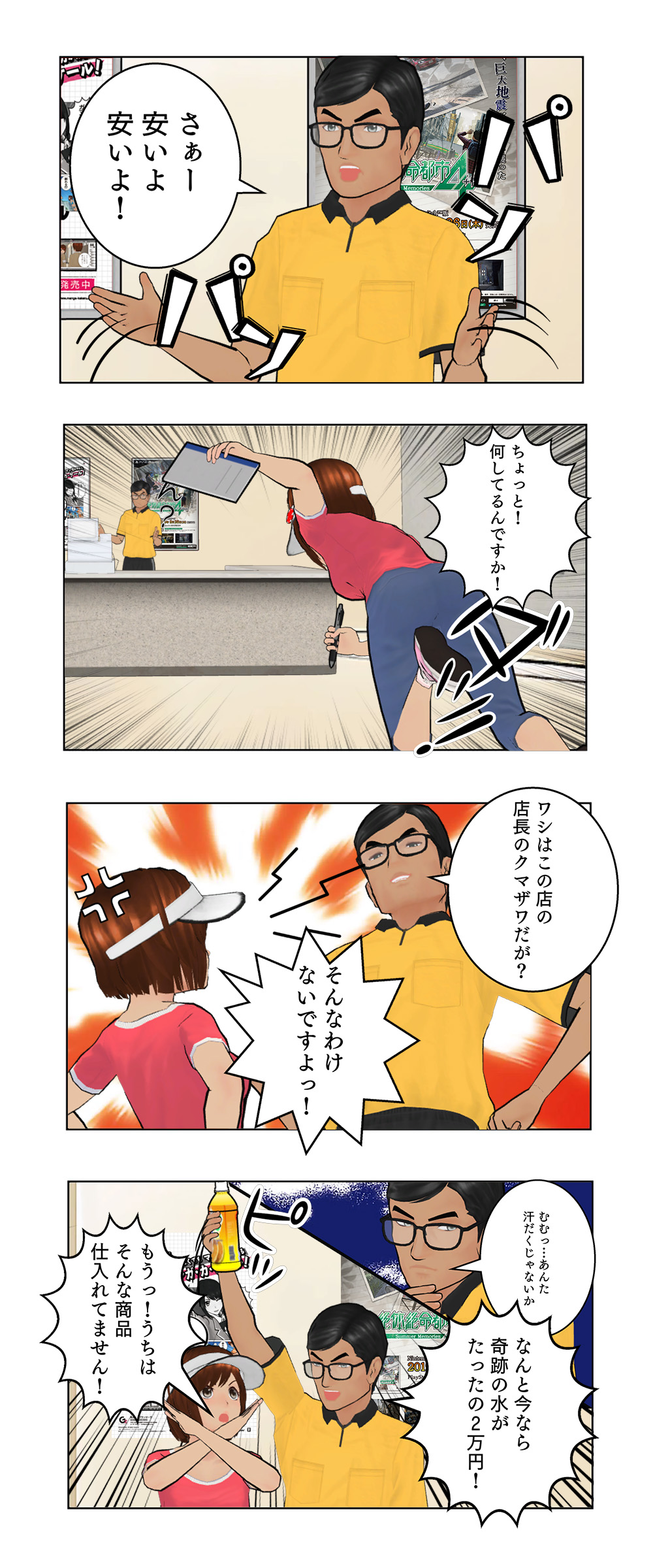 コンビニエンスストアの店長。ふてぶてしい巨漢の男。 地震発生を幸いに、被災者のよわみに付け込んだ金儲けを企んでいる。